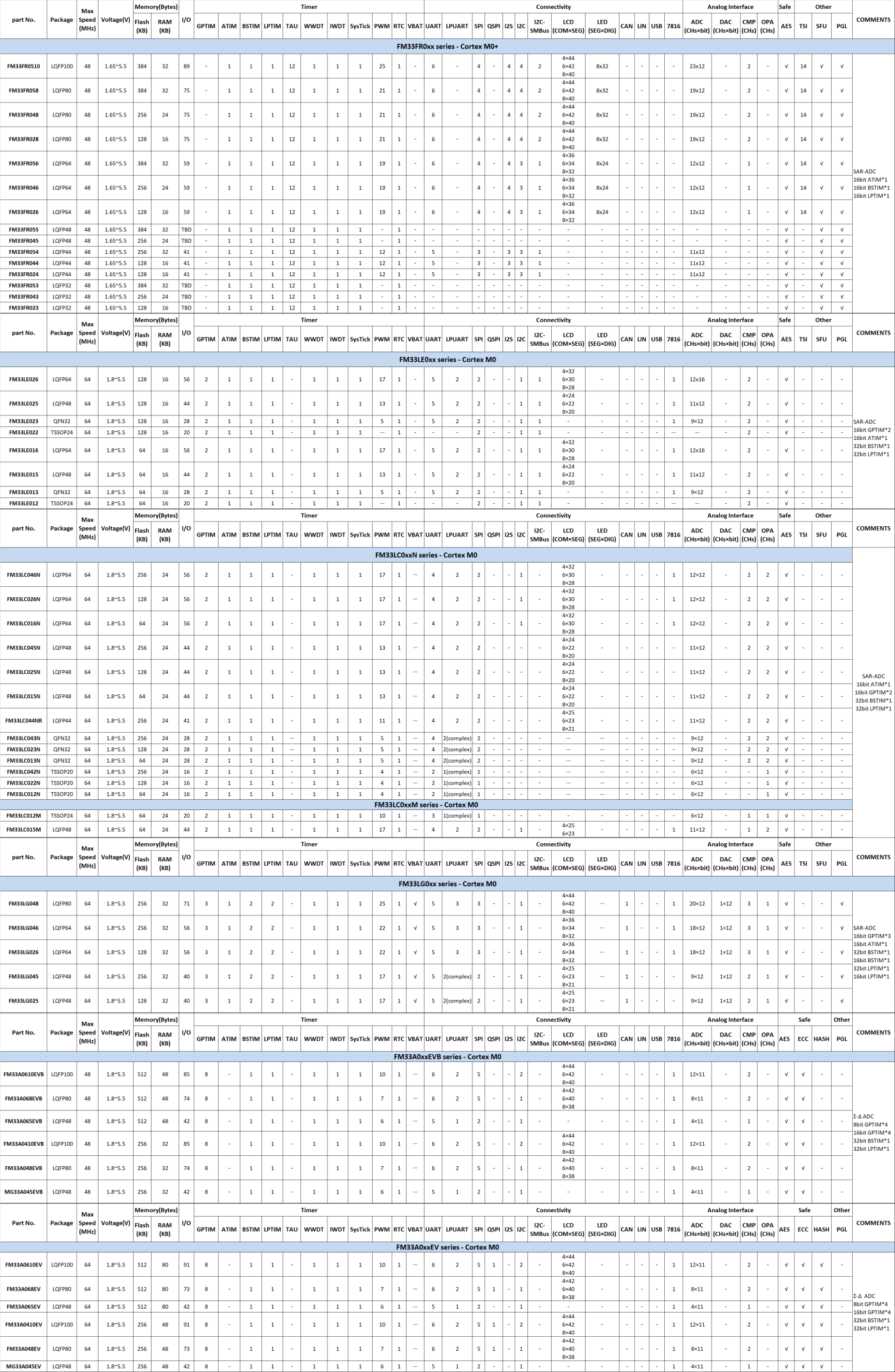 FM33G0xx系列芯片是ARM Cortex-M0内核的32位低功耗MCU芯片,最大可支持512KB FLASH程序存储器和 64KB RAM,集成LCD驱动、AES加解密引擎、带温补的RTC时钟、ADC、以及UART、I2C、SPI、7816等通用外设接口。